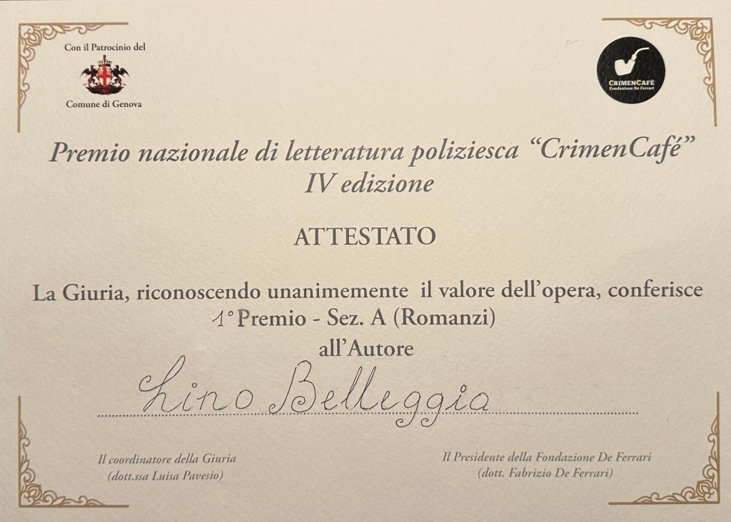 1° Premio – Sez. A (Romanzi) Premio nazionale di letteratura poliziesca “CrimenCafé” IV edizione